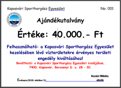 Aki 2018. január 06-ig a területi engedély kiváltásához felhasználható NYEREMÉNY UTALVÁNYT vált ki az egyesületi irodában, vagy az akcióban résztvevő horgászboltokban, sorsoláson vesz részt, amelyet a KaposTV KAPÁSPONT című műsora is közvetít.